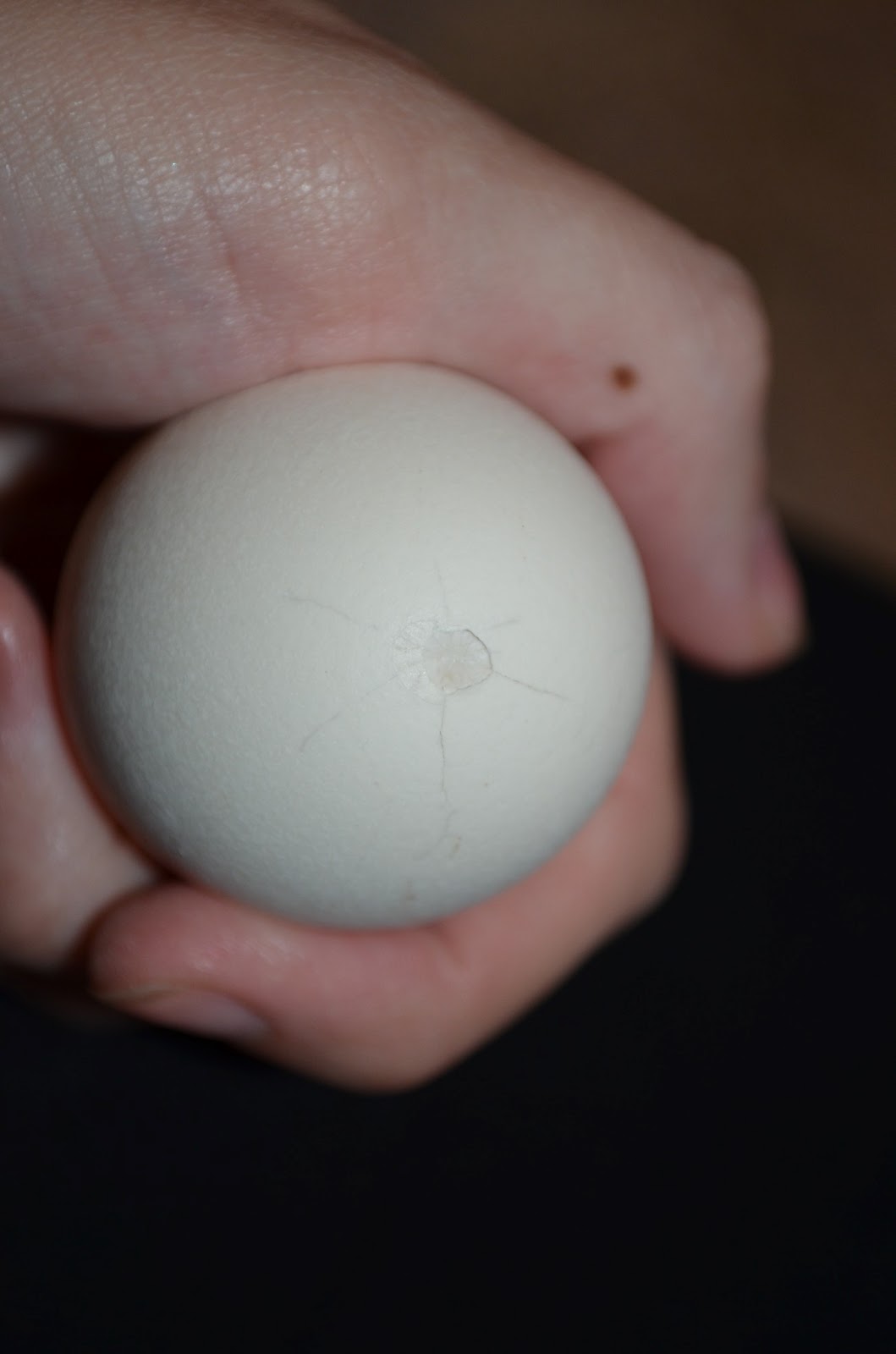 One of the eggs out of the first batch. This is what happened when it had a small crack and I put it in the incubator anyway. The crack got bigger